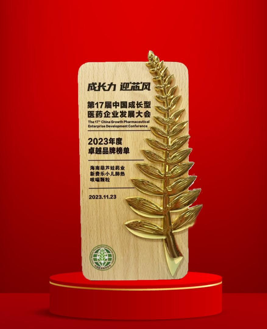 大会期间,一年一度的“金叶奖•2023年度医药行业风云人物奖”榜单重磅揭晓,yd12399云顶药业集团党委书记、董事长刘景萍荣耀上榜。金叶奖是为了表彰广大医药企业家或企业为行业茁壮发展做出的卓越贡献而设立的奖项,“金”象征着品质、品牌、影响力,“叶”象征着生命、健康、成长力。金与叶结合,有“敬业、兢业、竞业”之意。此外,集团黄金单品新费乐®小儿肺热咳喘颗粒凭借卓越的产品质量和品牌影响力赢得了行业、市场和消费者的肯定,获得了“2023年度卓越品牌奖”。